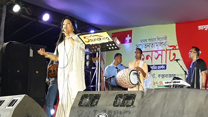 শনিবার (২৭ মে) সন্ধ্যায় সুইজারল্যান্ডের সহযোগিতায় জেলা প্রশাসন কক্সবাজার ও উইনরক ইন্টারন্যাশনালের আয়োজনে এই অনুষ্ঠানে গান করেন তিনি।