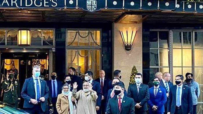 প্রধানমন্ত্রী ফ্রান্সের রাজধানী প্যারিস যাওয়ার পথে এখানে হিথ্রো আন্তর্জাতিক বিমানবন্দরের উদ্দেশ্যে তাঁর প্যালেস অব রেসিডেন্সের ত্যাগ করেন।- বাসস