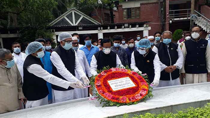 আজ সকালে আওয়ামী লীগ সাধারণ সম্পাদক ওবায়দুল কাদের প্রথমে দলের সভাপতি ও প্রধানমন্ত্রী শেখ হাসিনার পক্ষে এবং পরে দলের পক্ষ থেকে শীর্ষ নেতাদের নিয়ে বঙ্গবন্ধুর প্রতিকৃতিতে শ্রদ্ধা নিবেদন করেন। পরে দলের সহযোগী ও ভাতৃপ্রতিম সংগঠনের নেতৃবৃন্দ বঙ্গবন্ধুর প্রতিকৃতিতে শ্রদ্ধা নিবেদন করেন।