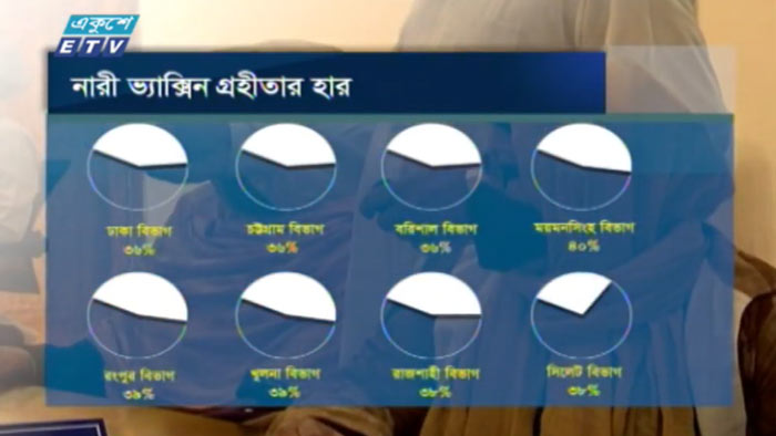 স্বাস্থ্য অধিদপ্তরের তথ্য অনুযায়ী, ঢাকা, চট্টগ্রাম ও বরিশাল বিভাগে নারীদের মধ্যে টিকা নেয়ার হার সবচেয়ে কম। মাত্র ৩৬ শতাংশ। সবচেয়ে বেশি টিকা নিয়েছেন ময়মনসিংহ বিভাগে, ৪০ শতাংশ। রংপুর ও খুলনা বিভাগের নারীরা ৩৯ শতাংশ। রাজশাহী ও সিলেট বিভাগে টিকা নেয়ার হার ৩৮ শতাংশ।