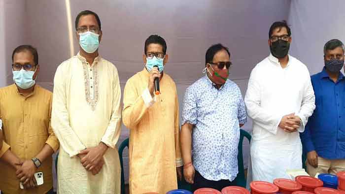 সংগঠনের সভাপতি নির্মল রঞ্জন গুহ বলেন, আমরা বিশ্ব মানবতার জননী দেশরত্ন জননেত্রী শেখ হাসিনার নির্দেশে অসহায় কর্মহীন মানুষের মাঝে খাদ্য ও মাস্ক বিতরণ কার্যক্রম শুরু করেছি। লকডাউন চলাকালে অসহায় কর্মহীন মানুষের পাশে দাঁড়াতে বিত্তবানদের প্রতি আহবান জানান তিনি।