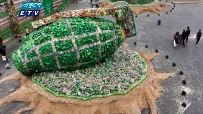 প্রতি মিনিটে সারা বিশ্বে ৩ হাজার ৮০০ খালি বোতল, চিপসের প্যাকেটসহ বিভিন্ন প্লাস্টিক বর্জ্য নদী বা সমুদ্রে মিশছে। যে কারণে ভয়াবহ রকমের দূষণের শিকার হচ্ছে পরিবেশ। বিশেষজ্ঞরা বলছেন, এখনই সচেতন না হলে অচিরেই প্লাস্টিক আবর্জনার ভাগাড়ে পরিণত হবে বিশ্ব। এ নিয়ে রাজধানীর মহাখালী টিএন্ডটি মাঠে হয়ে গেল ব্যক্তিক্রমী এক প্রদর্শনী।