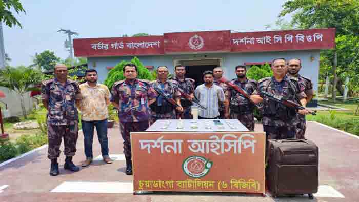 শনিবার সকাল ১০টার দিকে উপজেলায় দর্শনা আন্তর্জাতিক চেকপোস্ট থেকে তাকে আটক করা হয়। আটক তপন ঢাকার মুন্সিগঞ্জ থানার যাত্রাবাড়ী ভাঙ্গাপ্রেস গ্রামের শেখ জালাল উদ্দিনের ছেলে।