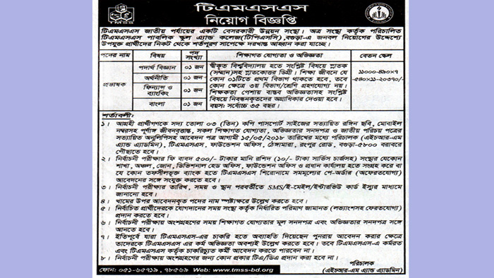 প্রভাষক নিয়োগ দেবে টিএমএসএস