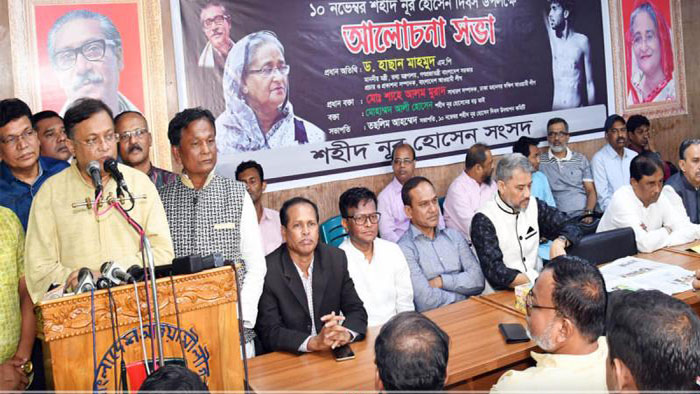 রোববার (১০ নভেম্বর) রাজধানীর বঙ্গবন্ধু এভিনিউস্থ ঢাকা মহানগর দক্ষিণ আওয়ামী লীগ কার্যালয়ে ‘শহীদ নূর হোসেন’ দিবস উপলক্ষে আয়োজিত এক আলোচনা সভায় প্রধান অতিথির বক্তব্যে এসব কথা বলেন তিনি।