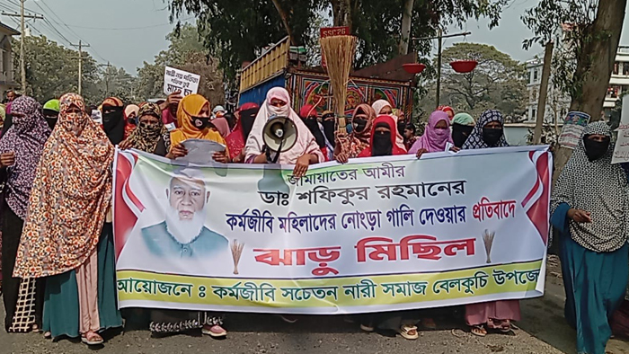 জামায়াত আমিরের অশালিন মন্তব্যের প্রতিবাদে সিরাজগঞ্জে নারীদের ঝাড়ু মিছিল