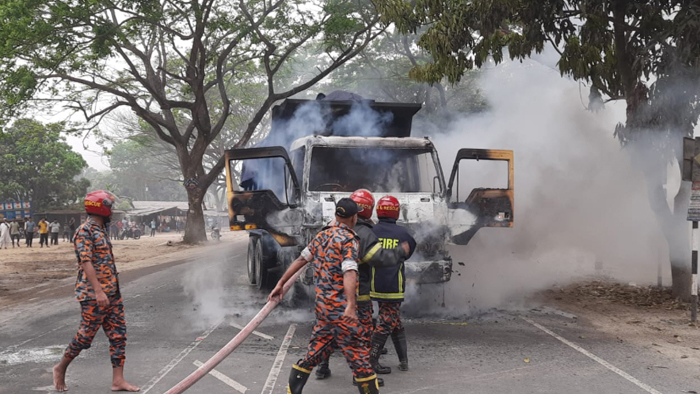 বুধবার দুপুর দেড়টার দিকে এ দুর্ঘটনার পর বিক্ষুদ্ধ জনতা ট্রাকটিতে আগুন দেয়।