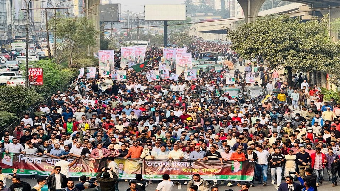 মিছিলটি রাজধানীর ঢাকা বনানী কাকলী ফুট ওভার ব্রিজের নিচে থেকে মহাখালী কাঁচাবাজার গিয়ে শেষ হয়।