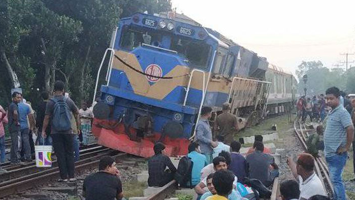 সোমবার (২৯ সেপ্টেম্বর) ভোর চারটার দিকে এ ঘটনা ঘটে।  এ ঘটনায় কেউ হতাহত হয়নি বলে প্রাথমিকভাবে জানা গেছে। তবে ট্রেনে প্রায় সহস্রাধিক যাত্রী চরম ভোগান্তিতে পড়েছেন।