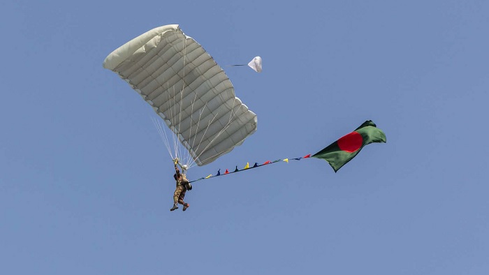 পতাকা হাতে ৫৪ বাংলাদেশি প্যারাট্রুপারের বিশ্বরেকর্ড