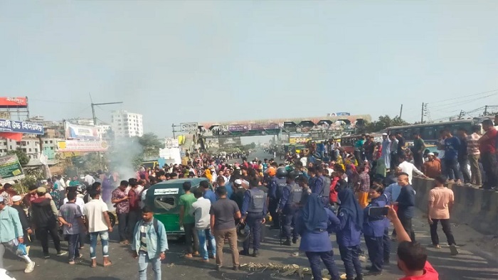 বকেয়া বেতনের দাবিতে ঢাকা-চট্টগ্রাম মহাসড়ক অবরোধ