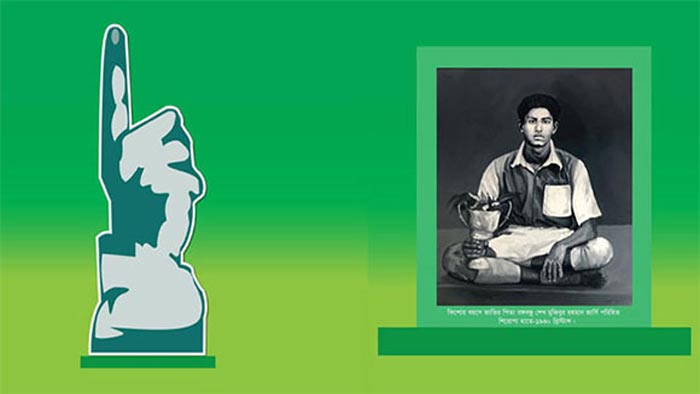 ঢাকা বিশ্ববিদ্যালয়ের চারুকলা বিভাগের সাবেক শিক্ষার্থী মো. মোয়াজ্জেম হোসেন জনি রং-তুলির ক্যানভাসে খেলোয়াড় বঙ্গবন্ধুকে ফুটিয়ে তুলেছেন।