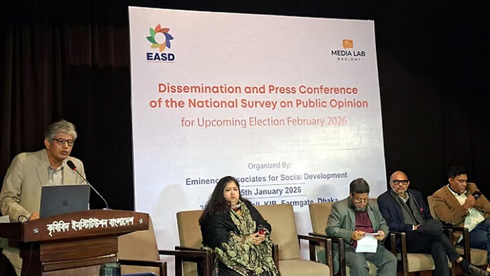 বেসরকারি সংস্থা এমিনেন্স অ্যাসোসিয়েটস ফর সোশ্যাল ডেভেলপমেন্ট (ইএএসডি) এই জনমত জরিপ চালায়।