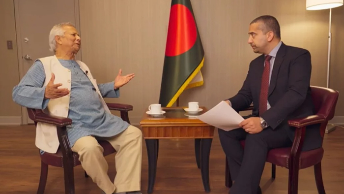 সাংবাদিক মেহেদি হাসান এই সাক্ষাৎকার নেন। তাঁর সঙ্গে দীর্ঘ আলোচনায় অধ্যাপক ইউনূসকে অন্তর্বর্তী সরকারের নেতৃত্ব নেওয়ার প্রসঙ্গও মনে করিয়ে দেওয়া হয়।