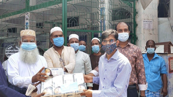 প্রথম ধাপে পাঁচ হাজার মাস্ক বিতরণ করেন তিনি। পর্যায়ক্রমে শহরের বাইরের মসজিদগুলোতে মাস্ক বিতরণ করা হবে বলেও ইউএনও কমলেশ মজুমদার জানান।