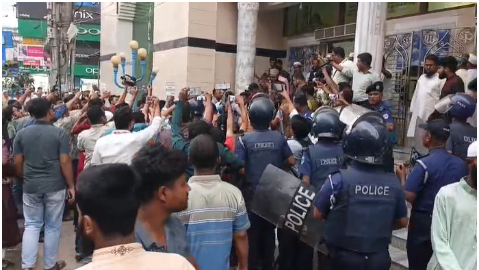 ১৪৪ ধারা ভঙ্গ করে বৈষম্যবিরোধী ছাত্র-আন্দোলনের শিক্ষার্থীরা চকবাজার মসজিদের সামনে জড়ো হয়। এক পর্যায়ে মিছিল বের করতে চাইলে পুলিশ বাধা দেয় এবং ১৪৪ ধারা ভঙ্গ না করতে অনুরোধ জানায়। কিন্তু পুলিশের বাধা না মেনে মিছিল করতে চাইলে পুলিশ লার্টিচার্জ করে। এতে পুলিশের সাথে বৈষম্যবিরোধী ছাত্র আন্দোলনের শিক্ষার্থীদের ধাওয়া-পাল্টা ধাওয়া ও সংঘর্ষ হয়।