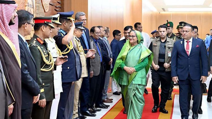 আন্তর্জাতিক নারী সম্মেলনে যোগ দিতে সৌদি আরবের উদ্দেশে ঢাকা ছেড়েছেন প্রধানমন্ত্রী শেখ হাসিনা।