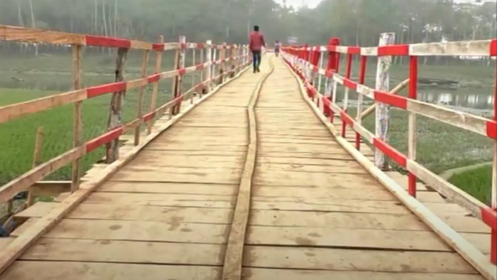স্বেচ্ছাশ্রমে চারশ’ ফুট দৈর্ঘ্যের কাঠের সেতু নির্মাণ (ভিডিও)