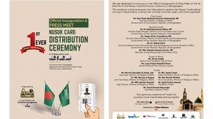 হজযাত্রীদের জন্য ‘নুসুক কার্ড’ বিতরণ কার্যক্রমের উদ্বোধন আজ