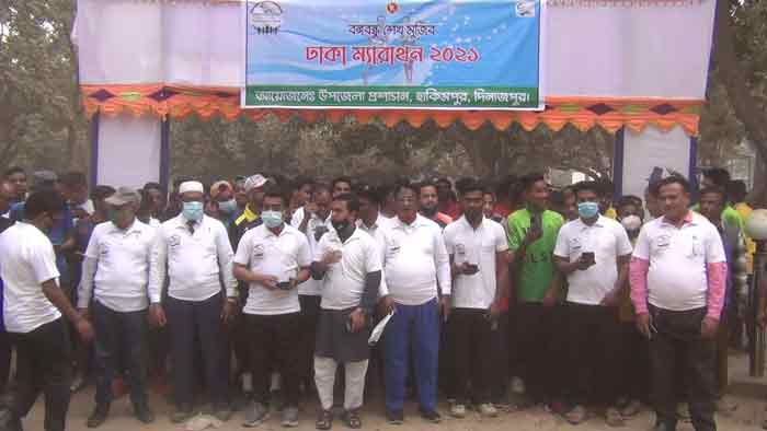 হিলিতে `বঙ্গবন্ধু শেখ মুজিব ঢাকা ম্যারাথন` অনুষ্ঠিত