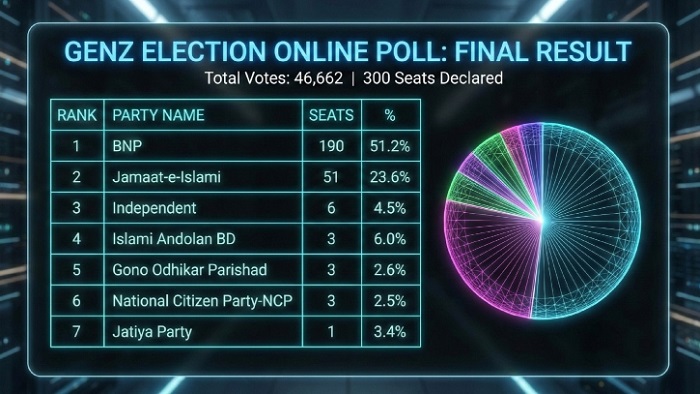 দেশের চলমান রাজনৈতিক পরিস্থিতিতে তরুণ প্রজন্মের ভাবনা ও বিভিন্ন প্রার্থীর জনপ্রিয়তা মূল্যায়নের লক্ষ্যে পরিচালিত স্বতন্ত্র অনলাইন জরিপ ‘জেন-জেড ব্যালট’ (GenZ Ballot)-এর ভোটগ্রহণ শেষ হয়েছে।