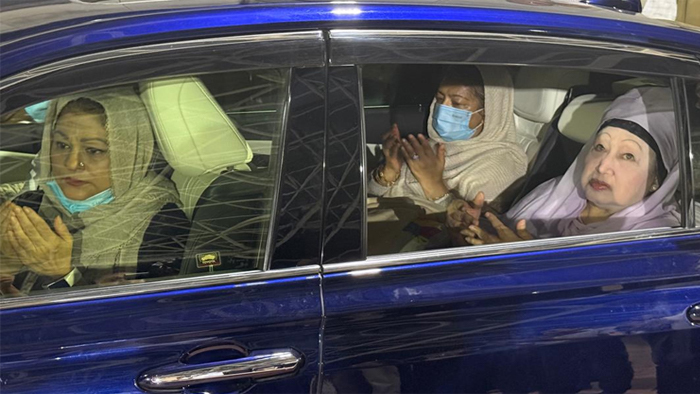 বুধবার দিবাগত রাত ১১টার দিকে তিনি সেখানে যান এবং ১১টা ২০ মিনিটের দিকে বাসার উদ্দেশ্যে রওনা হন। এর আগে রাত সাড়ে ১০টার পর গুলশানের বাসা ফিরোজা থেকে খালেদা জিয়া রওনা হন।