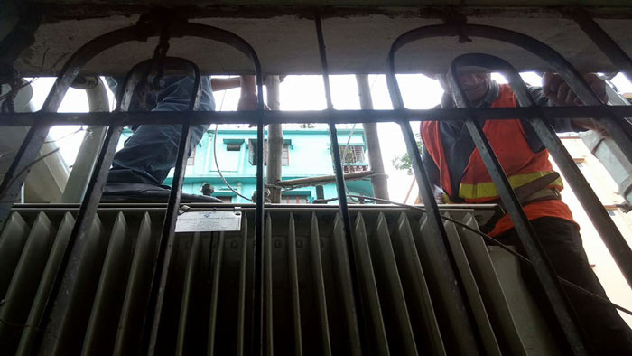 ছবিঃ গত ২২ জুন ট্রান্সফরমারটির বৈদ্যুতিক সংযোগ বিচ্ছিন্ন করে ডিপিডিসি কর্মীরা।