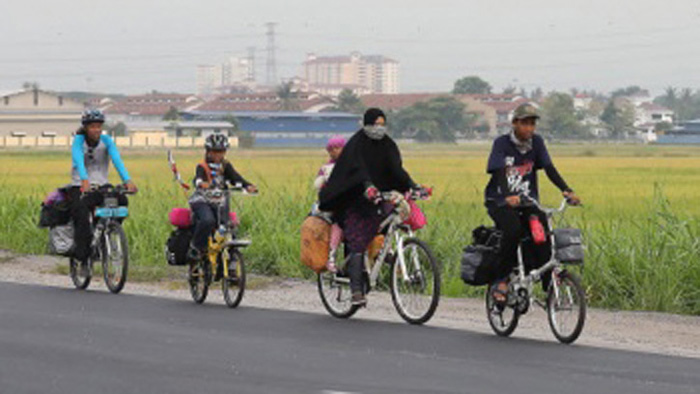হজ পালনে সাইকেল যাত্রায় ইন্দোনেশীয় পরিবার