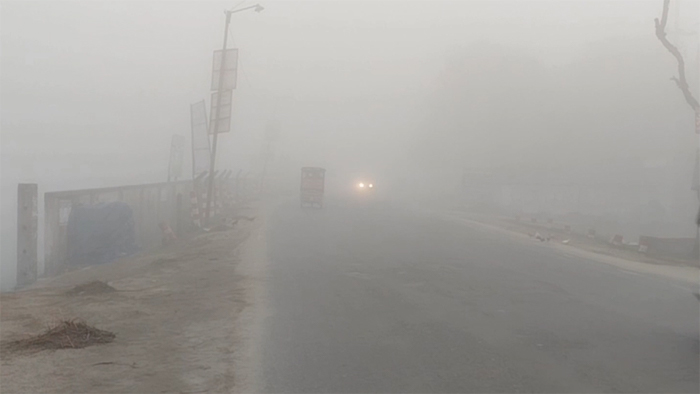 হিমালয়ের কাছাকাছি হওয়ায় শীতের প্রভাব বরাবরই বেশি পঞ্চগড়ে। সন্ধ্যার পর বাড়ছে ঠাণ্ডা, বাড়ছে শীতের অনুভূতি। রাত বাড়ার সঙ্গে সঙ্গে ঘন কুয়াশা ছড়িয়ে পড়ছে চারদিকে। সকাল ৯টা পর্যন্ত কুয়াশায় আচ্ছন্ন থাকছে বিভিন্ন এলাকা।