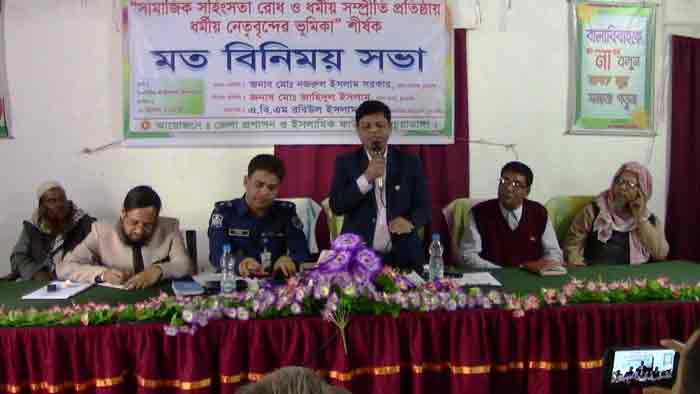 চুয়াডাঙ্গায় সামাজিক সহিংসতারোধ ও ধর্মীয় সম্প্রীতি প্রতিষ্ঠায় ধর্মীয় নেতৃবৃন্দের ভূমিকা শীর্ষক মত বিনিময় সভা অনুষ্ঠিত হয়েছে। বুধবার বেলা সাড়ে ১১টায় জেলা প্রশাসন ও ইসলামিক ফাউন্ডেশন আয়োজনে এ মতবিনিময় সভা অনুষ্ঠিত হয়।