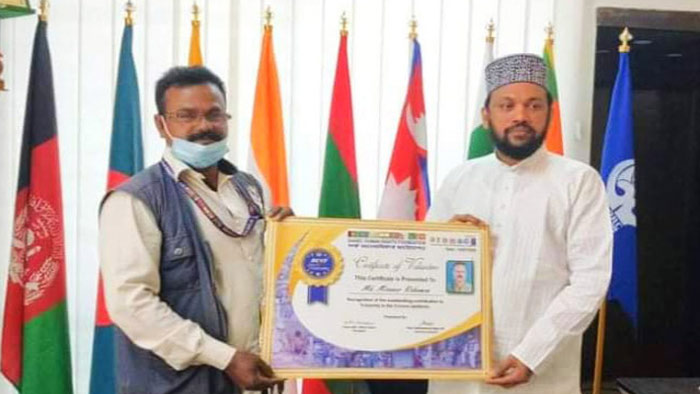 স্মারকটি তার হাতে তুলে দেন সার্ক মানবাধিকার ফাউন্ডেশনের মহাসচিব মাওলানা মো: আবেদ আলী। পাশাপাশি যশোর জেলা সার্ক মানবাধিকার ফাউন্ডেশন এর প্রেসিডেন্ট হিসেবে কাজ করার জন্য দায়িত্বও দেয়া হয় তাকে।
