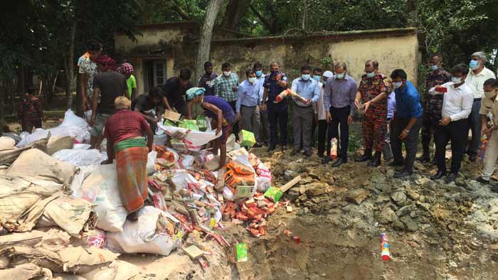 ধ্বংসকৃত মালামালের মধ্যে রয়েছে বিড়ি, সিগারেট, বাজি, কসমেটিক্স সামগ্রী, কয়েল, কারেন্ট জাল, তামাকের গুড়া, বিস্কিট, প্লাস্টিক সামগ্রী, কার্পেট, শাড়িসহ প্রায় ৯’শ প্রকারের বিভিন্ন পণ্য।