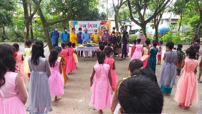 নওগাঁয় সুবিধা বঞ্চিত শিশুদের নিয়ে ফল উৎসব