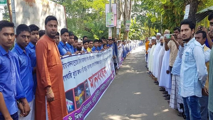হামলার প্রতিবাদে মানববন্ধনে শিক্ষক, অভিভাবক ও শিক্ষার্থীরা