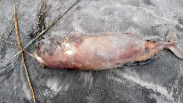 কুয়াকাটা সমুদ্র সৈকতে ভেসে এলো মৃত ডলফিন