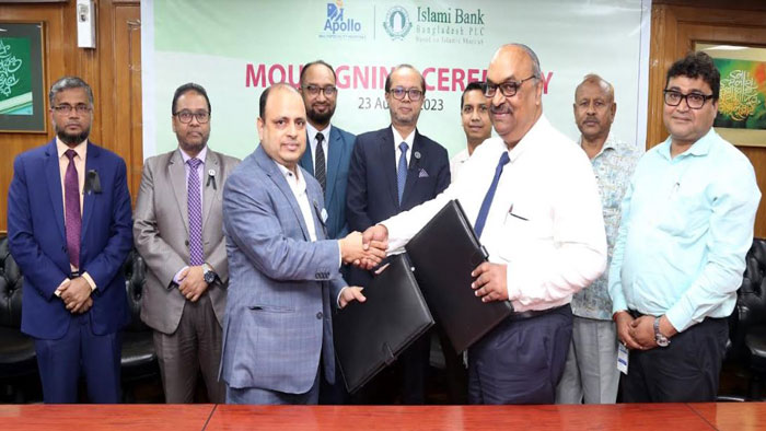 বুধবার ইসলামী টাওয়ারে ব্যাংকের ম্যানেজিং ডাইরেক্টর ও সিইও মুহাম্মদ মুনিরুল মওলার উপস্থিতিতে ডেপুটি ম্যানেজিং ডাইরেক্টর মো. আকিজ উদ্দীন ও অ্যাপোলো মাল্টি স্পেশালিটি হাসপাতাল কলকাতার সিইও রানা দাসগুপ্ত এ সংক্রান্ত সমঝোতা স্মারকে নিজ নিজ প্রতিষ্ঠানের পক্ষে স্বাক্ষর করেন।