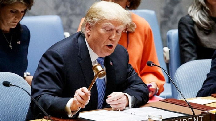 মার্কিন প্রেসিডেন্ট ডোনাল্ড ট্রাম্পের সভাপতিত্বে জাতিসংঘ নিরাপত্তা পরিষদের বৈঠক অনুষ্ঠিত হয়েছে। এতে ট্রাম্প গণবিধ্বংসী অস্ত্রের বিস্তার রোধ করার বিষয়ে ইরান সরকারকে তীব্র ভাষায় আক্রমণ করলে বিশ্ব নেতারা ইরানের পরমাণু সমঝোতার পক্ষে কথা বলে মার্কিন প্রেসিডেন্টকে অপ্রস্তুত করে দিয়েছেন।