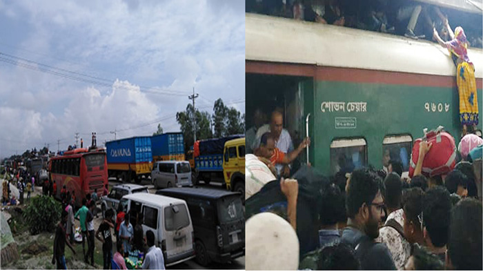 ঈদযাত্রা: বাসে যানজট, ট্রেনের শিডিউল বিপর্যয়
