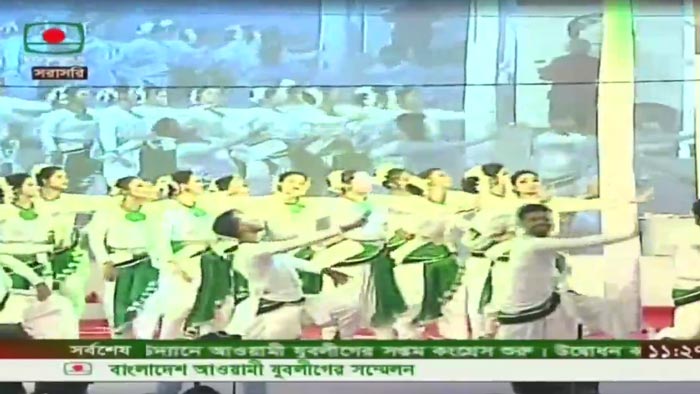 যুবলীগের জাতীয় কংগ্রেসের মঞ্চে উপস্থিত হয়েছেন আওয়ামী লীগ সভাপতি ও প্রধানমন্ত্রী শেখ হাসিনা। এবার পদ্মা সেতুর আদলে তৈরি করা হয়েছে মঞ্চটি।