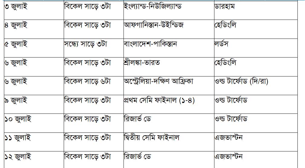 এবার দেখে নিন ক্রিকেট বিশ্বকাপের পূর্ণাঙ্গ সূচি :