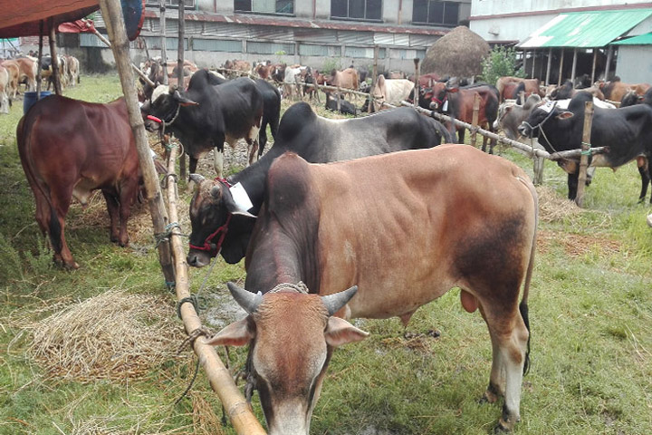 সারে সারে গরু বাঁধা। দেখে মনে হয় কোরবানির পশুর হাট। আসলে তা নয়। শোক দিবস উপলক্ষে গণভোজের জন্য ওয়ার্ডে ওয়ার্ডে বিতরণের জন্য এগুলো আনা হয়েছে । ছবি সংগৃহিত