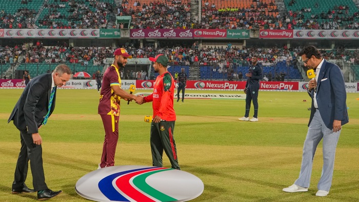 ওয়েস্ট ইন্ডিজের বিপক্ষে তিন ম্যাচ সিরিজের প্রথম টি–টোয়েন্টিতে টসে হেরে চট্টগ্রামের বীরশ্রেষ্ঠ মতিউর রহমান স্টেডিয়ামে ফিল্ডিংয়ে নেমেছে বাংলাদেশ। এদিকে লিটন দাস চোট কাটিয়ে দলে ফেরায় একাদশ থেকে ছিটকে গেছেন জাকের আলি ।